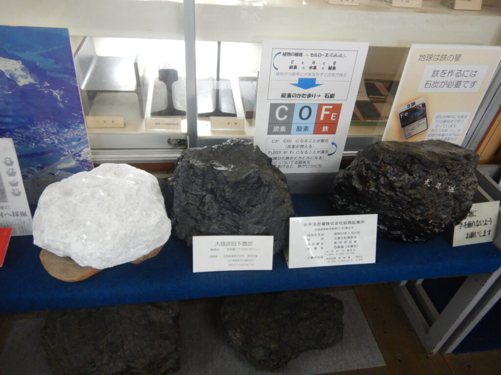 館内では、実際の石炭の展示もあり、その種類や特徴についても学べます。