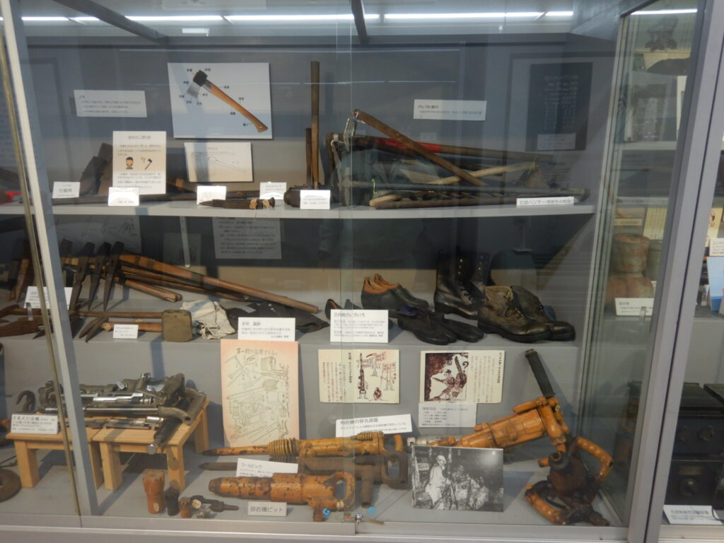 展示されている採掘道具は、想像以上にシンプルで無骨。